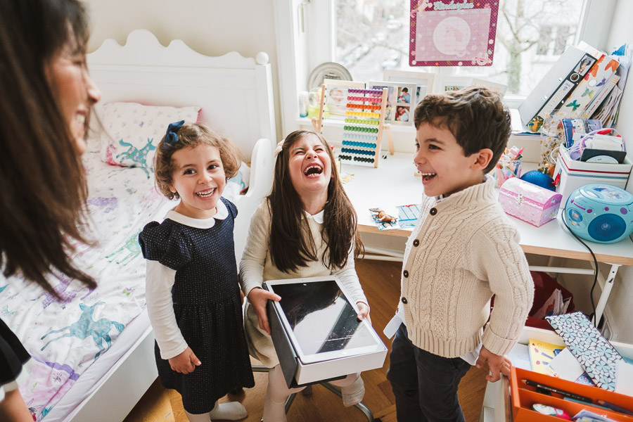 Genau diese Mischung aus authentischen Momenten und klassischen Familienporträts macht Weihnachtsfotos zu etwas ganz Besonderem. Die Kinder dürfen sie selbst sein – mal ruhig, mal wild – und die Eltern genießen einfach die gemeinsame Zeit – oder versuchen es zumindest. 😉 Diese natürlichen Momente eignen sich hervorragend für persönliche Weihnachtskarten, die eure Familie authentisch zeigen.